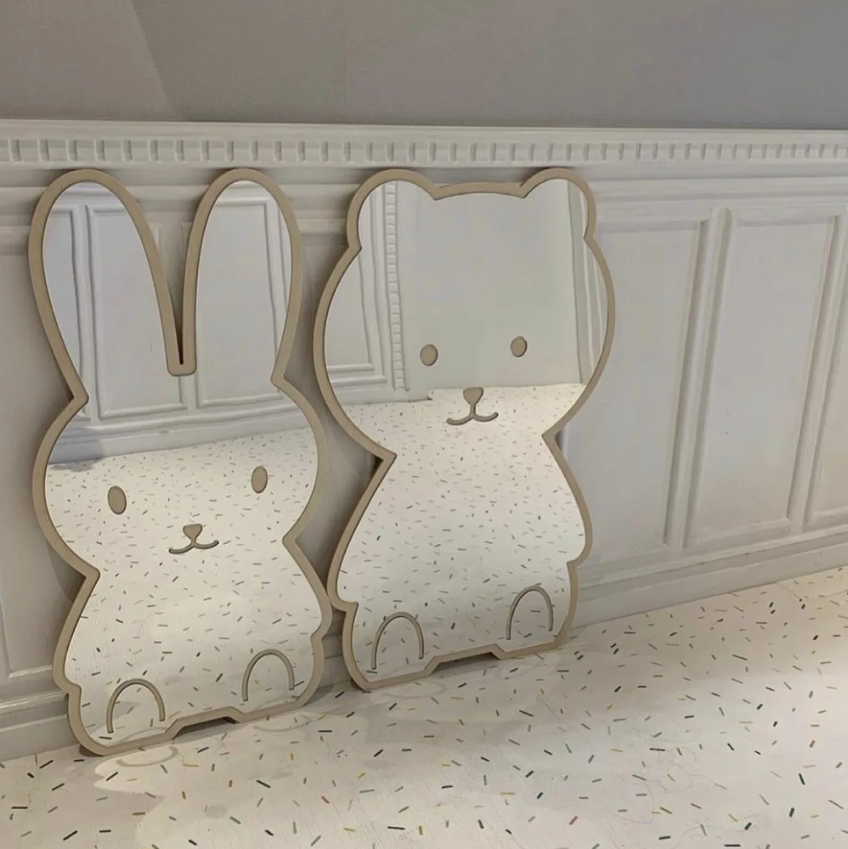 Coelho urso em forma de espelho acrílico ornamentos dos desenhos animados artesanato foto adereços bebê crianças quarto nordic decoração casa